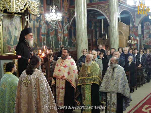 Την Παρασκευή 29 Νοεμβρίου 2019, το απόγευμα, τελέσθηκε, προεξάρχοντος του Σεβασμιωτάτου Μητροπολίτου Άρτης κ. Καλλινίκου, πανηγυρικός Εσπερινός, επί τη μνήμη του Αγίου Ενδόξου Αποστόλου Ανδρέου του Πρωτοκλήτου, στον ενοριακό Ιερό Ναό Αγίου Γεωργίου της πόλεως Άρτης, όπου φυλάσσεται απότμημα Ιερού Λειψάνου του Αγίου.