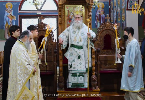 Στον ενοριακό Ιερό Ναό του Αγίου Μαξίμου του Γραικού Άρτας, λειτούργησε ο Σεβασμιώτατος Μητροπολίτης Άρτης κ. Καλλίνικος το πρωί της Κυριακής 29 Ιανουαρίου 2023.