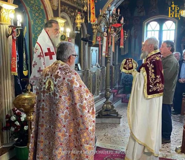 Την Κυριακή των Μυροφόρων, 30 Απριλίου 2023, το πρωΐ, ο Σεβασμιώτατος Μητροπολίτης Άρτης κ. Καλλίνικος λειτούργησε στον ενοριακό Ιερό Ναό Εισοδίων της Θεοτόκου στο χωριό Παλαιοκάτουνο Άρτης.