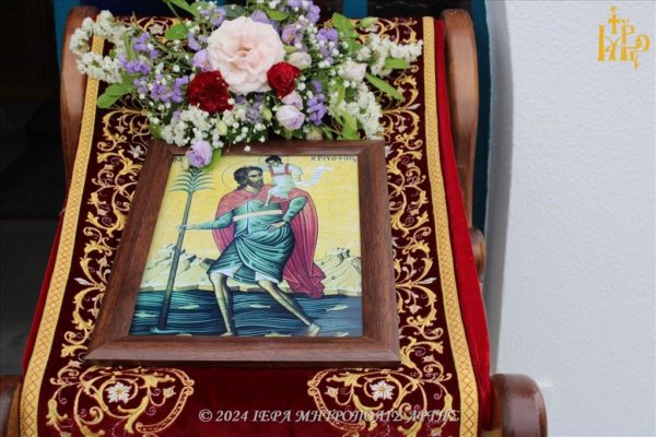 Στο Παρεκκλήσιο του Αγίου Κοσμά του Αιτωλού, το ευρισκόμενο εντός του Εκθεσιακού Κέντρου «Κώστας Βάγιας» της Άρτας, ετελέσθη Θεία Λειτουργία το πρωί της Πέμπτης της Διακαινησίμου 9 Μαΐου 2024, επί τη μνήμη του Αγίου Μεγαλομάρτυρος Χριστοφόρου, Προστάτου των οδηγών.