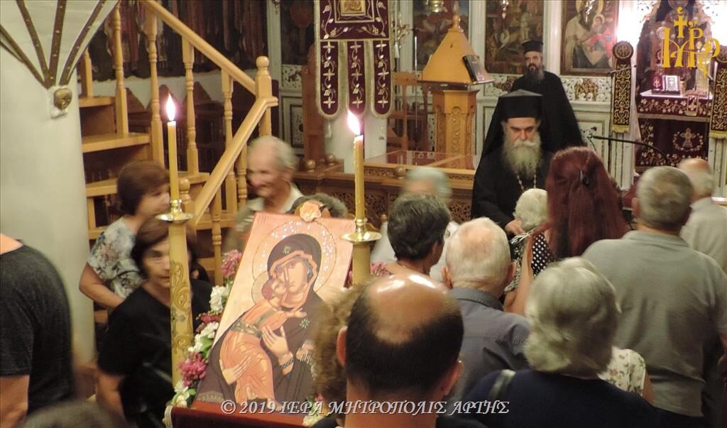 Την Κυριακή 11 Αυγούστου 2019, το απόγευμα, στον Ενοριακό Ιερό Ναό του Αγίου Γεωργίου Πέτα Άρτης, εψάλη η Ακολουθία του Παρακλητικού Κανόνος προς την Υπεραγία Θεοτόκο, χοροστατούντος του Σεβασμιωτάτου Μητροπολίτου Άρτης κ. Καλλινίκου.