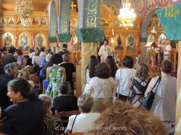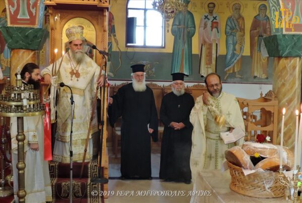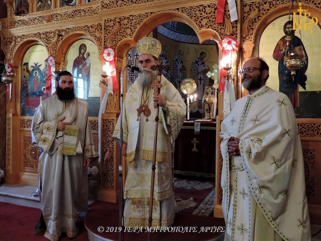 Την Πέμπτη 15 Αυγούστου 2019, το πρωΐ, στον πανηγυρίζοντα Ιερό Ναό Κοιμήσεως της Θεοτόκου, στην Μηλέα Πηγών (Γρέβια) Άρτης, ελειτούργησε ο Σεβασμιώτατος Μητροπολίτης Άρτης κ. Καλλίνικος.