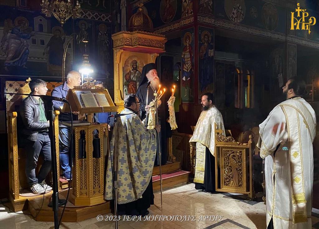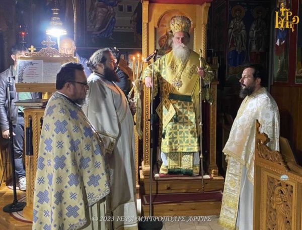 Ιερά Αγρυπνία επί τη μνήμη του Αγίου Νεκταρίου προεξάρχοντος του Σεβασμιωτάτου Μητροπολίτου Άρτης κ. Καλλινίκου τελέστηκε το βράδυ της Τετάρτης 8 Νοεμβρίου ξημερώνοντας προς Πέμπτη 9 Νοεμβρίου 2023 στον Ενοριακό Ιερό Ναό των Αγίων Αποστόλων Πέτρου και Παύλου Κομμένου Άρτης.