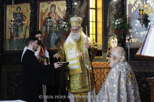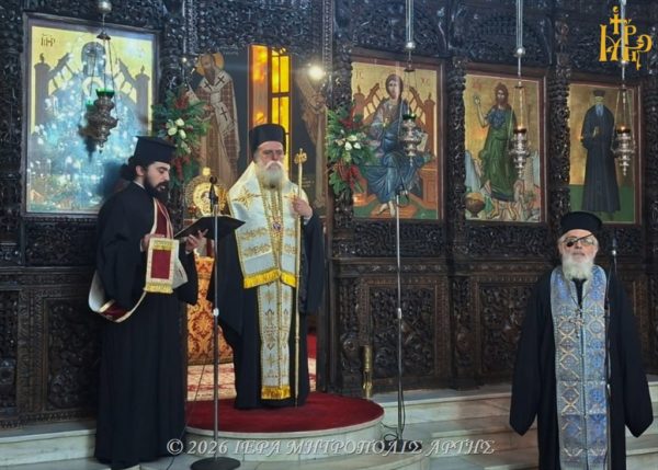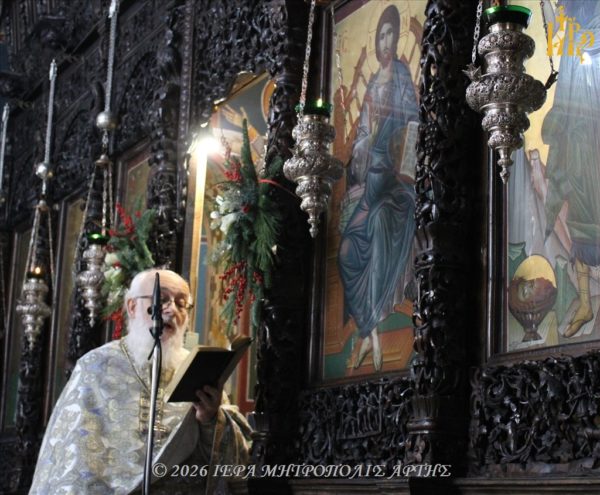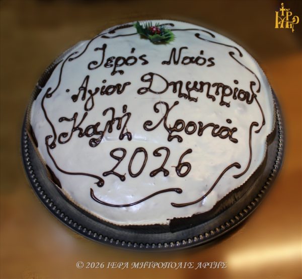 Την Πέμπτη 1 Ιανουαρίου 2026, ανήμερα της Πρωτοχρονιάς, ο Σεβασμιώτατος Μητροπολίτης Άρτης κ. Καλλίνικος προεξήρχε της Θείας Λειτουργίας και ευλόγησε τη Βασιλόπιτα στον Μητροπολιτικό Ιερό Ναό του Αγίου Δημητρίου Άρτης.