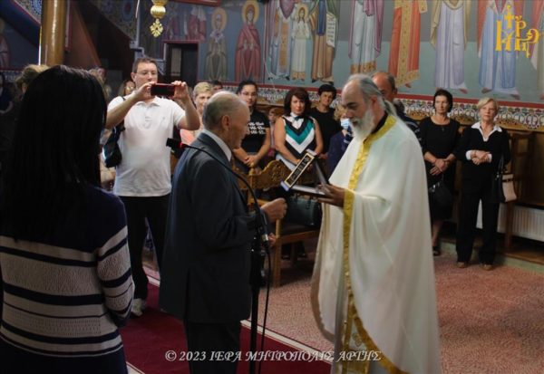 Στο πέρας της Θείας Λειτουργίας το Εκκλησιαστικό Συμβούλιο της Ενορίας απένειμε τιμητική πλακέτα στον Ελατιώτη κ. Αριστείδη Σχισμένο, για την προσφορά του τόσο στην εκπαίδευση όσο και στην ιστορική έρευνα του τόπου.