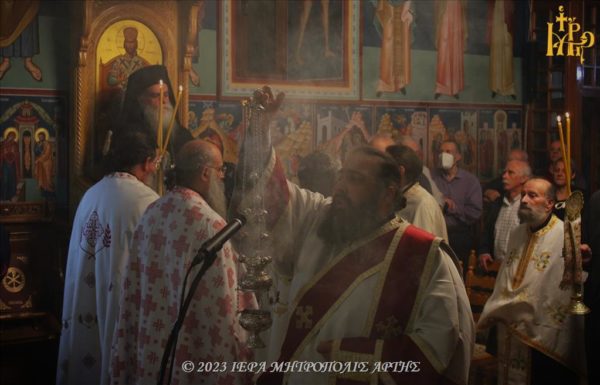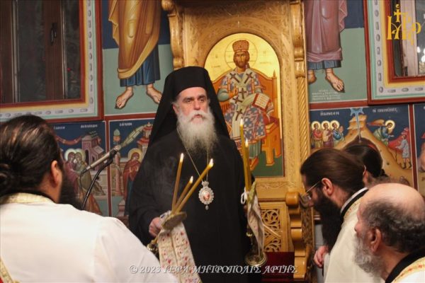 Την Τρίτη 31 Οκτωβρίου 2023, το απόγευμα, στο εν Άρτη πανηγυρίζον Ιερό Μετόχιο των Αγίων Αναργύρων Κοσμά και Δαμιανό, της Αγιορειτικής Ιεράς Μονής Οσίου Γρηγορίου, τελέσθηκε Μέγας Εσπερινός χοροστατούντος του Σεβασμιωτάτου Μητροπολίτη Άρτης κ. Καλλινίκου.