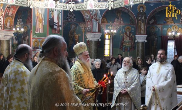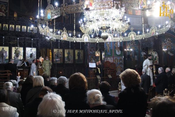 Στο πέρας της Θείας Λειτουργίας ετελέσθη τεσσαρακονθήμερο Ιερό Μνημόσυνο, υπέρ αναπαύσεως της μακαριστής Πρεσβυτέρας Παρασκευής, συζύγου του ιερατικώς προϊσταμένου του Μητροπολιτικού Ναού Άρτης, Αιδεσιμολογιωτάτου Πρωτοπρεσβυτέρου π. Βασιλείου Φλούδα. Οι πιστοί προσευχήθηκαν για την ανάπαυση της ψυχής της και για την ενίσχυση της οικογενείας της, με την ελπίδα της Αναστάσεως να προσφέρει παρηγορία και δύναμη και με τη μορφή του Αποστόλου Ανδρέου να παραμένει ως φωτεινό παράδειγμα πίστης και αφοσίωσης στον νικητή του θανάτου, Ιησού Χριστό.