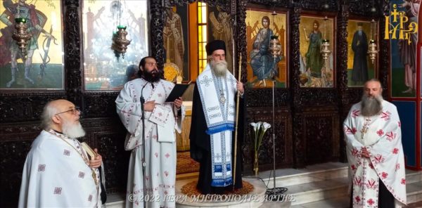 Στο πέρας της Θείας Λειτουργίας, ο Σεβασμιώτατος τέλεσε επιμνημόσυνη δέηση υπέρ αναπαύσεως των θυμάτων της Μικρασιατικής Καταστροφής.