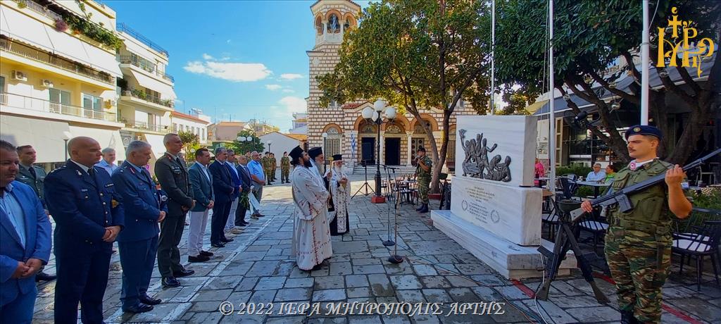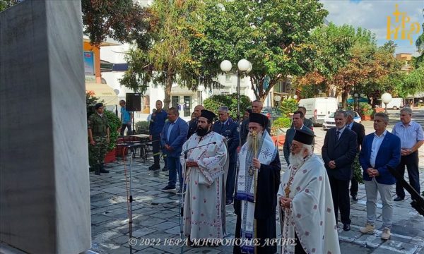 18/09/2022 18/09/2022 Στον Μητροπολιτικό Ιερό Ναό του Αγίου Δημητρίου Άρτης λειτούργησε ο Σεβασμιώτατος Μητροπολίτης Άρτης κ. Καλλίνικος, σήμερα Κυριακή 18 Σεπτεμβρίου 2022. Στο πέρας της Θείας Λειτουργίας, ο Σεβασμιώτατος τέλεσε επιμνημόσυνη δέηση υπέρ αναπαύσεως των θυμάτων της Μικρασιατικής Καταστροφής. Στην συνέχεια εκπρόσωποι Αρχών και Φορέων κατέθεσαν στεφάνια στο ευρισκόμενο έξωθι του Ιερού Ναού μνημείο.