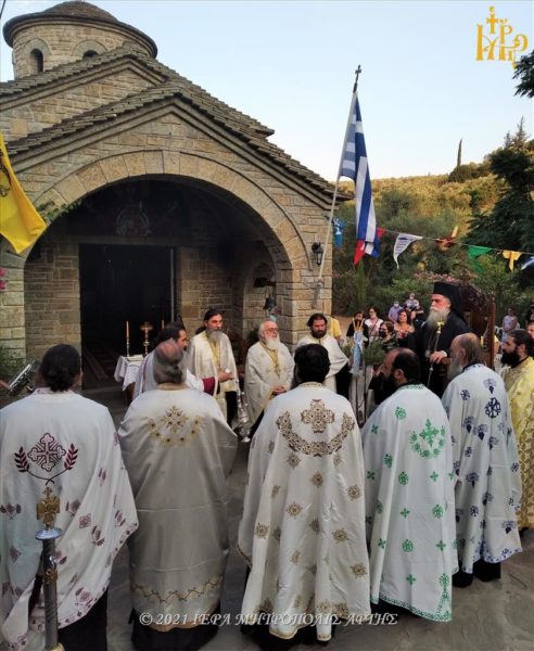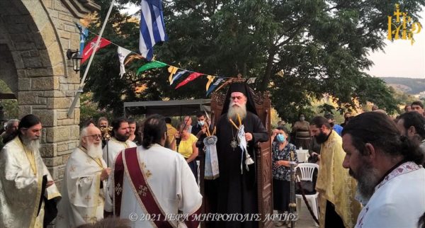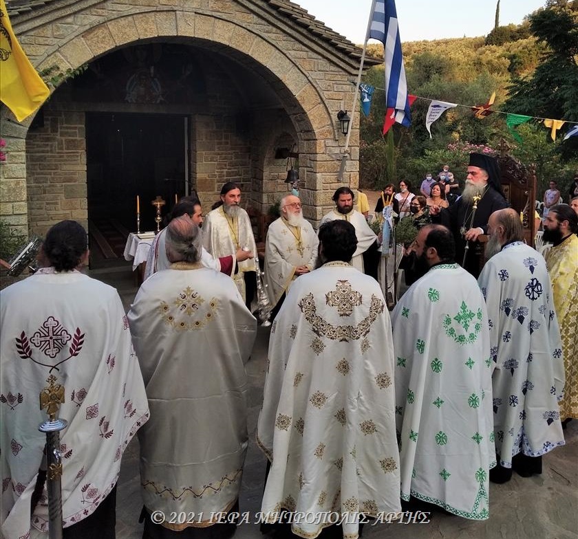 Στην Ακολουθία, η οποία τελέσθηκε στον αύλειο χώρο της Ιεράς Μονής, χοροστάτησε ο Σεβασμιώτατος Μητροπολίτης Άρτης κ. Καλλίνικος, συμπαραστατούμενος από Κληρικούς της περιοχής.