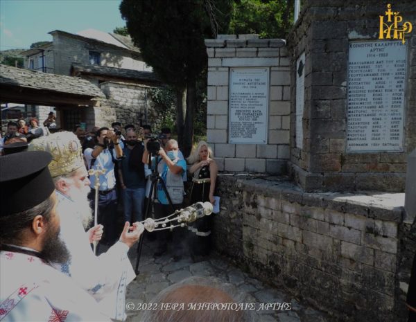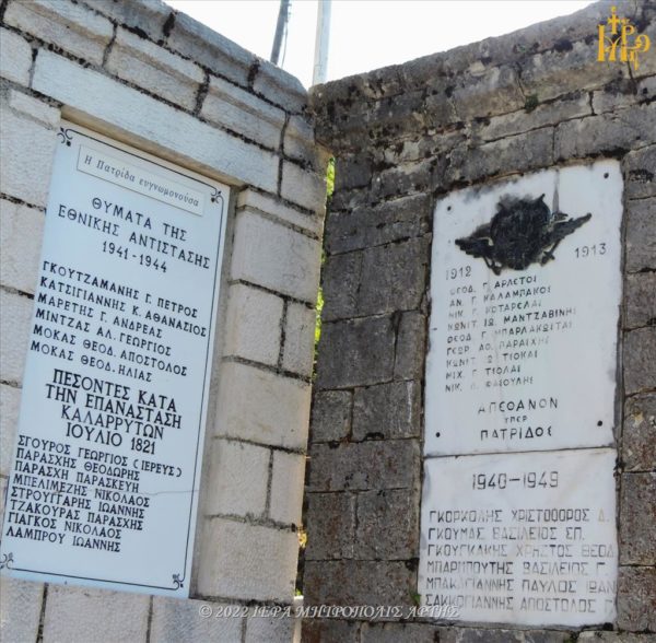 Μετά το πέρας της σημερινής Θείας Λειτουργίας ο Σεβασμιώτατος τέλεσε, στο εντός του περιβόλου του Ναού ευρισκόμενο Μνημείο, επιμνημόσυνη δέηση, υπέρ αναπαύσεως των υπέρ Πίστεως και Πατρίδος πεσόντων, πριν από 201 χρόνια, κατά την Επανάσταση των Καλαρρυτών.