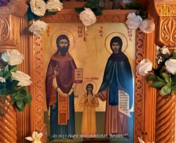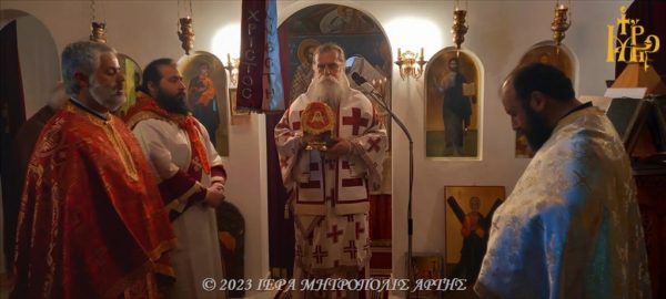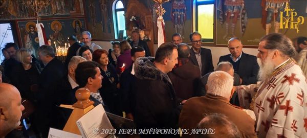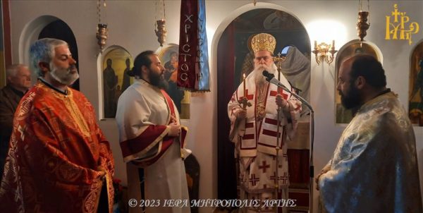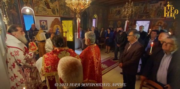 Ο Μητροπολίτης Άρτης στο πανηγυρίζον παρεκκλήσι των Αγίων Ραφαήλ, Νικολάου και Ειρήνης Άνω Καλεντίνης