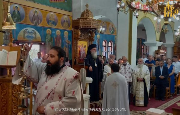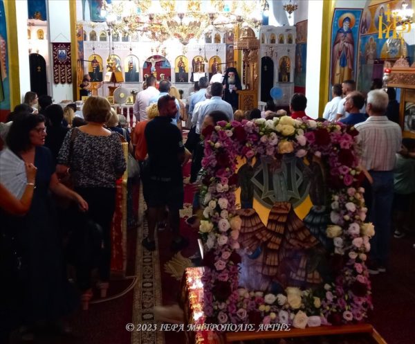 Στον πανηγυρίζοντα Ιερό Ναό της Μεταμορφώσεως του Σωτήρος Συκεών Άρτης, τελέσθηκε το απόγευμα του Σάββατο 5 Αυγούστου 2023, Μέγας Εσπερινός χοροστατούντος του Σεβασμιωτάτου Μητροπολίτου Άρτης κ. Καλλινίκου.