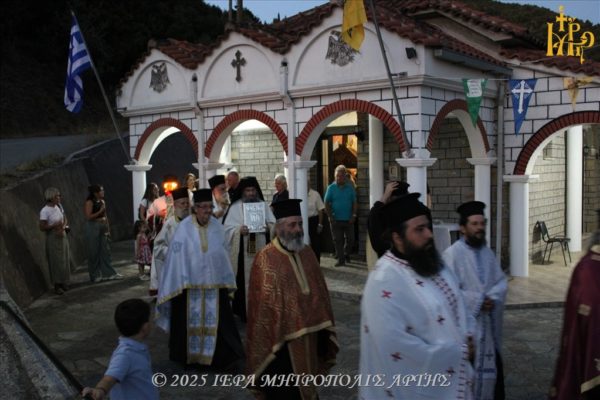 Με κατάνυξη τελέσθηκε το απόγευμα της Πέμπτης, 28 Αυγούστου 2025, ο Μέγας Εσπερινός στον πανηγυρίζοντα ενοριακό Ιερό Ναό Τιμίου Προδρόμου στην Πέρα Καλεντίνη Άρτης, με την ευκαιρία της εορτής της Αποτομής της Τιμίας Κεφαλής του Αγίου Ιωάννου του Προδρόμου.