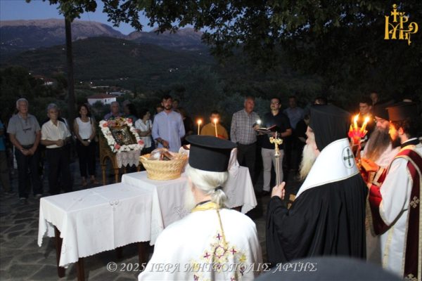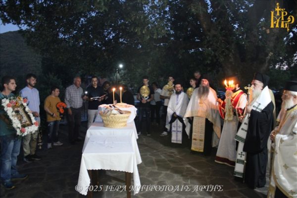 Κατά την Ιερά Ακολουθία χοροστάτησε ο Σεβασμιώτατος Μητροπολίτης Άρτης κ. Καλλίνικος, πλαισιωμένος από Κληρικούς και πιστούς, οι οποίοι προσήλθαν με ευλάβεια για να τιμήσουν τον Τίμιο Πρόδρομο και Βαπτιστή του Κυρίου.