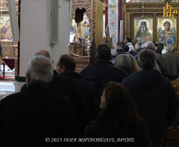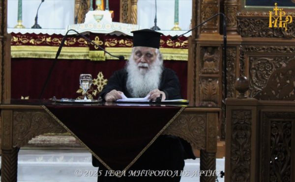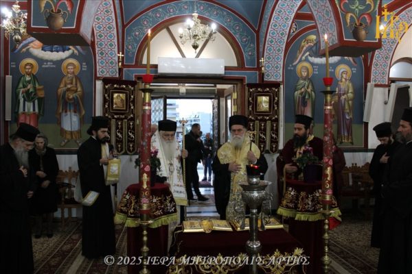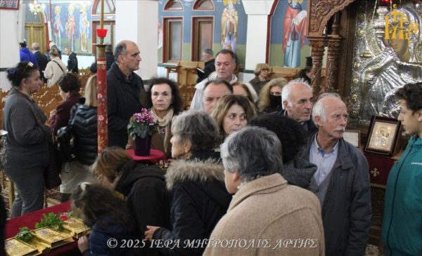 Με το πέρας του Ευχελαίου, ο Σεβασμιώτατος Μητροπολίτης Ἀρτης κ. Καλλίνικος καλωσόρισε και ευχαρίστησε θερμά τον Μητροπολίτη Ἀργολίδος για την ευλογία των Αγίων Λειψάνων και για την παρουσία του. Με λόγια αγάπης ανέδειξε την προσφορά, τη σεμνότητα και τη διαρκή διακονία του κ. Νεκταρίου, τόσο στην Ἐκκλησία, όσο και στους νέους ανθρώπους, που στηρίζει μέσα από ποικίλες κοινωνικές δράσεις στην Ελλάδα και στο εξωτερικό.