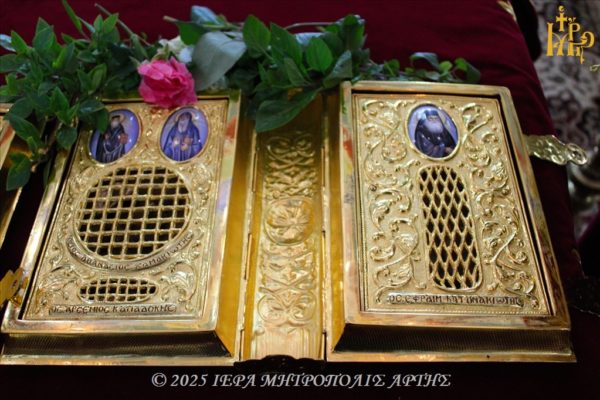 Τα Τίμια Λείψανα εκομίσθησαν προς προσκύνηση στην Άρτα από τον Σεβασμιώτατο Μητροπολίτη Αργολίδος κ. Νεκτάριο, ο οποίος ανταποκρίθηκε με προθυμία στην πρόσκληση του Ποιμενάρχου κ. Καλλινίκου.