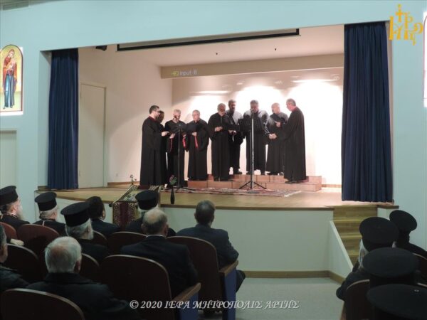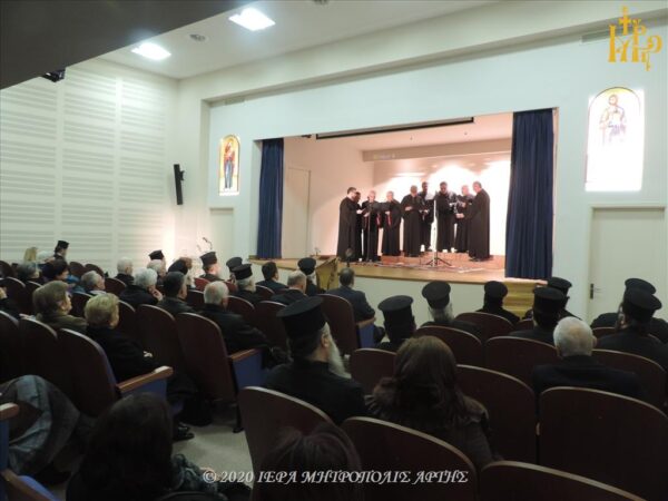 Ύμνους της Εορτής των Τριών Ιεραρχών απέδωσε χορωδία της Σχολής Βυζαντινής Μουσικής, της Ιεράς Μητροπόλεως Άρτης, υπό την διεύθυνση του κ. Γεωργίου Κόκκινου.