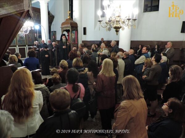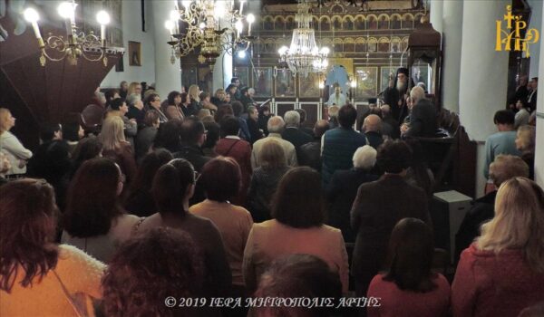 20/11/2019 20/11/2019 Στο Μητροπολιτικό Παρεκκλήσιο των Εισοδίων της Θεοτόκου, στο Επισκοπείο Άρτης, ετελέσθη σήμερα το απόγευμα Μέγας Εσπερινός, χοροστατούντος του Σεβασμιωτάτου Μητροπολίτου Άρτης κ. Καλλινίκου. Τον Θείο λόγο εκήρυξε ο Αιδεσιμολογιώτατος Πρωτοπρεσβύτερος π. Δημήτριος Νικολάου, ο οποίος ετόνισε, ότι η προσφορά μας στον Θεό και στον συνάνθρωπο, μας καταξιώνει.
