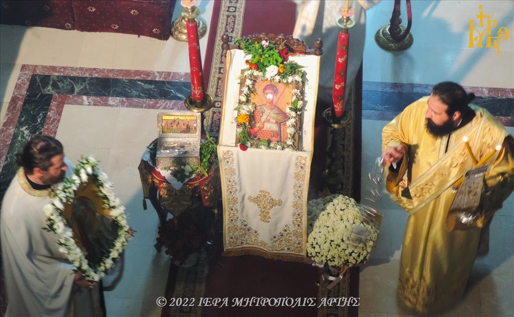 Προεξάρχοντος του Μητροπολίτου Άρτης κ. Καλλινίκου τελέσθηκε το απόγευμα της Τρίτης 25 Οκτωβρίου 2022, με θρησκευτική μεγαλοπρέπεια, ο Μέγας Εσπερινός για τη μνήμη του Αγίου Μεγαλομάρτυρος Δημητρίου του Μυροβλύτου, στον πανηγυρίζοντα φερώνυμο Μητροπολιτικό Ιερό Ναό, στην Άρτα.
