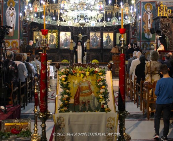 Χοροστατούντος του Σεβασμιωτάτου Μητροπολίτου Άρτης κ. Καλλινίκου, τελέσθηκε το απόγευμα της Τετάρτης, 25 Οκτωβρίου 2023, με θρησκευτική μεγαλοπρέπεια, ο Μέγας Εσπερινός, επί τη μνήμη του Αγίου Μεγαλομάρτυρος Δημητρίου του Μυροβλύτου, στον πανηγυρίζοντα φερώνυμο Μητροπολιτικό Ιερό Ναό, στην Άρτα.