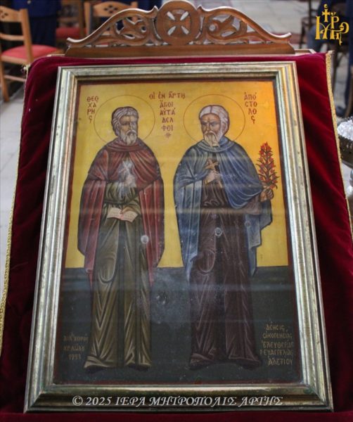Επί τη μνήμη των Αγίων Αυταδέλφων Θεοχάρους και Αποστόλου των εν Άρτη, τελέσθηκε σήμερα Θεία Λειτουργία στον Ιερό Ναό της Αγίας Σοφίας στην πόλης της Άρτης, όπου φυλάσσεται η Εικόνα των Αγίων, προεξάρχοντος του Σεβασμιωτάτου Μητροπολίτη Άρτης κ. Καλλινίκου.
