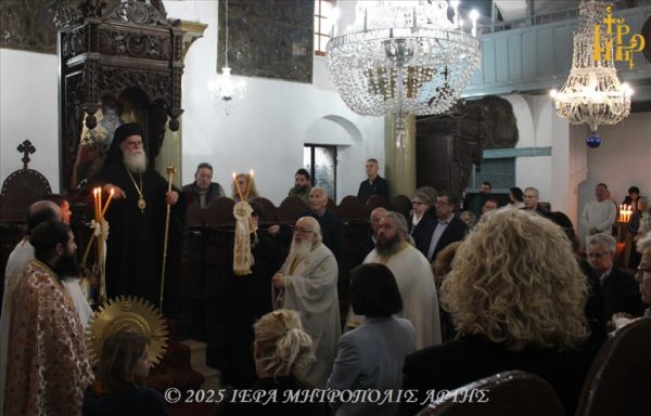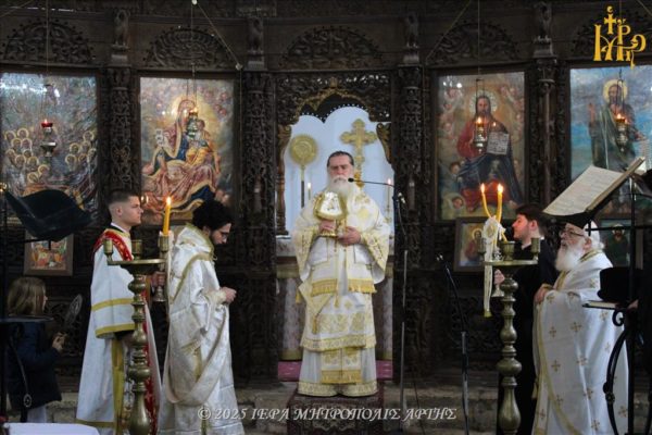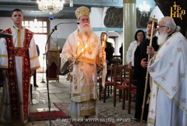 Την Δευτέρα της Διακαινησίμου, το απόγευμα, στον ίδιο Ιερό Ναό, στην πόλη της Άρτας, τελέσθηκε πανηγυρικός Εσπερινός, χοροστατούντος του Σεβασμιωτάτου κ. Καλλινίκου. Ο Σεπτός Ποιμενάρχης τόνισε, ότι “η Ανάσταση προϋποθέτει νέκρωση των παθών”.