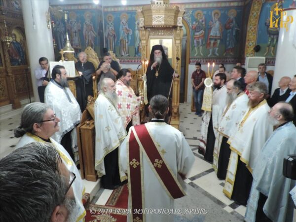 Το Σάββατο 26 Οκτωβρίου 2019, το απόγευμα, στον Ενοριακό Ιερό Ναό του Αγίου Θεράποντος, στους Αγίους Αναργύρους Άρτης, ετελέσθη Μέγας Εσπερινός, προεξάρχοντος του Σεβασμιωτάτου Μητροπολίτου Άρτης κ. Καλλινίκου, επί τη Πανηγύρει της Παναγίας της Εσφαγμένης, αντίγραφο της οποίας φυλάσσεται στον εν λόγω Ναό.