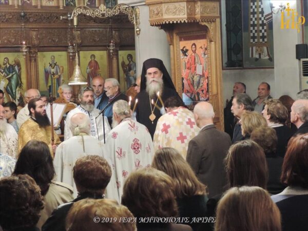 Την Πέμπτη 7 Νοεμβρίου 2019, το απόγευμα, στον Ενοριακό Ιερό Ναό των Παμμεγίστων Ταξιαρχών της πόλεως Άρτης, ετελέσθη Πανηγυρικός Εσπερινός, χοροστατούντος του Σεβασμιωτάτου Μητροπολίτου Άρτης κ. Καλλινίκου.