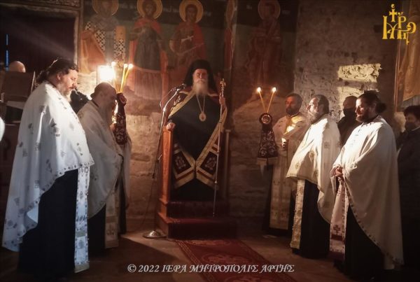 Το απόγευμα της Πέμπτης, 24ης Μαρτίου 2022, στον πανηγυρίζοντα βυζαντινό Ναό της Παρηγορήτισσας, στην Άρτα, ο Σεβασμιώτατος Μητροπολίτης Άρτης κ. Καλλίνικος, χοροστάτησε στον Μέγα Εσπερινό.