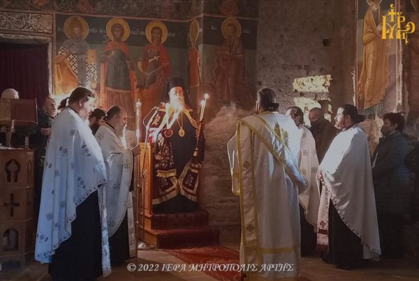 Το απόγευμα της Πέμπτης, 24ης Μαρτίου 2022, στον πανηγυρίζοντα βυζαντινό Ναό της Παρηγορήτισσας, στην Άρτα, ο Σεβασμιώτατος Μητροπολίτης Άρτης κ. Καλλίνικος, χοροστάτησε στον Μέγα Εσπερινό.