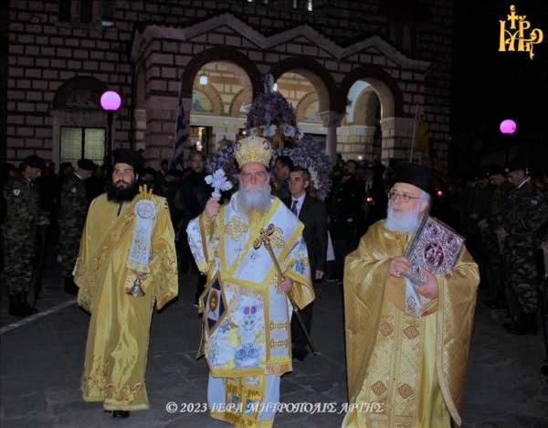 Πραγματοποιήθηκε η περιφορά του Επιταφίου του Μητροπολιτικού Ιερού Ναού. Από την κεντρική πλατεία της πόλεως πέρασαν, όπως κάθε έτος, οι Επιτάφιοι όλων των ενοριών της πόλεως, έμπροσθεν του Σεβασμιωτάτου, ο οποίος στο μήνυμά του, ετόνισε, ότι “κηδεύοντας τον Ιησού, θανάτου εορτάζομεν νέκρωσιν”.