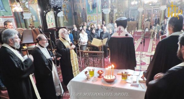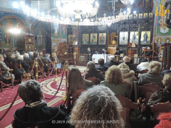 Την Κυριακή 15 Δεκεμβρίου 2019, το απόγευμα, στον Μητροπολιτικό Ιερό Ναό του Αγίου Δημητρίου Άρτης, ετελέσθη το Μυστήριο του Ιερού Ευχελαίου, προεξάρχοντος του Σεβασμιωτάτου Μητροπολίτου Άρτης κ. Καλλινίκου και ακολούθησε ομιλία, υπό του Πανοσιολογιωτάτου Καθηγουμένου της Συνοδικής Μονής Οσίου Συμεών Καλάμου Αττικής, Γέροντος Χριστοδούλου.
