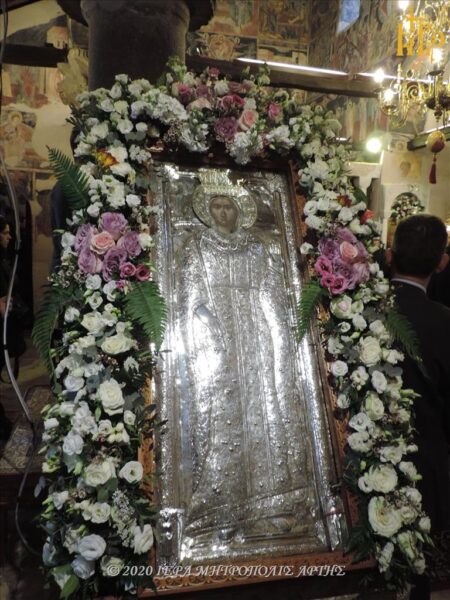 Την Τρίτη 10 Μαρτίου 2020, το απόγευμα, στον βυζαντινό Ναό της Οσίας Θεοδώρας στην Άρτα, ετελέσθη πολυαρχιερατικός Εσπερινός επί τη μνήμη της Αγίας.