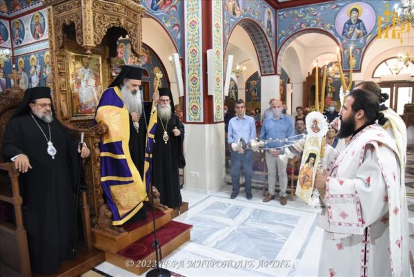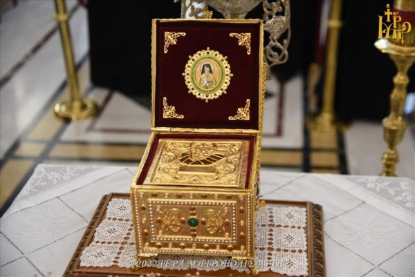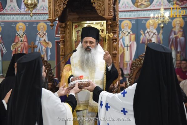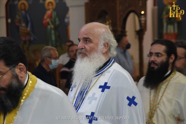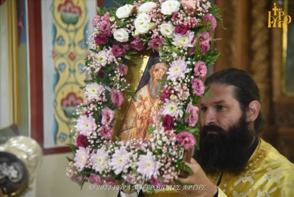 Πλήθος πιστών συνέρρευσε στον Ιερό Ναό, προκειμένου να συμμετάσχει στον Εσπερινό, να προσκυνήσει το Ιερό Λείψανο του Αγίου, αλλά και να ευχηθεί τα δέοντα στον εορτάζοντα Μητροπολίτη.