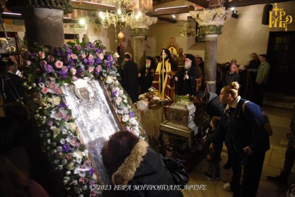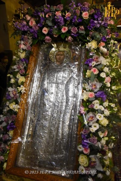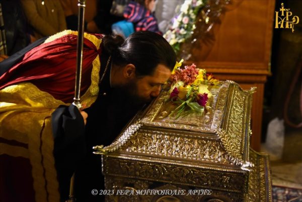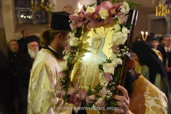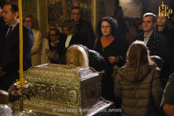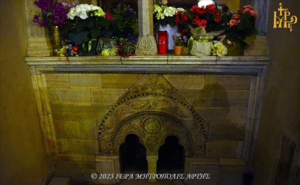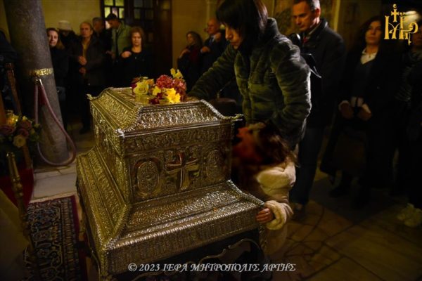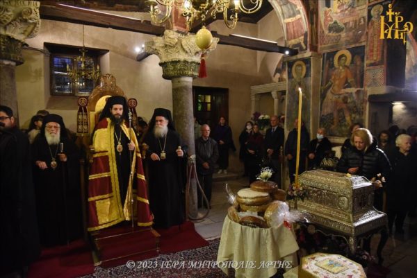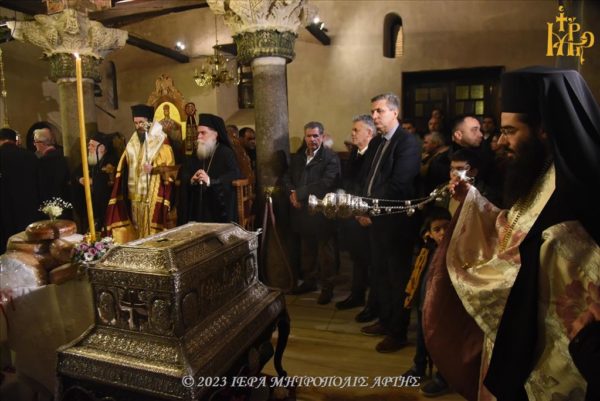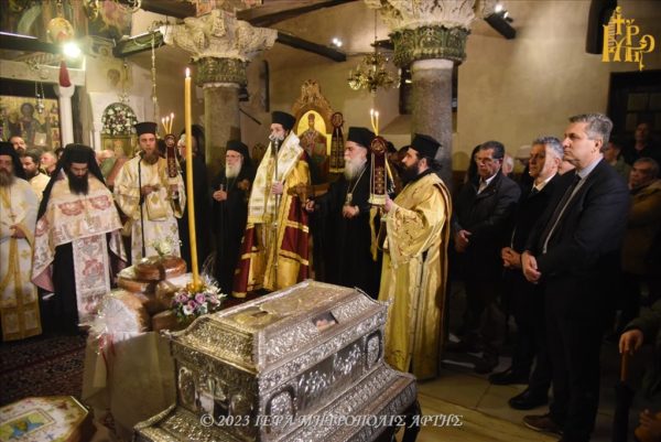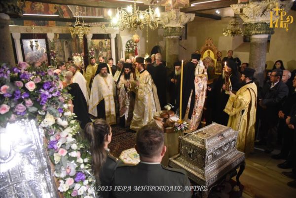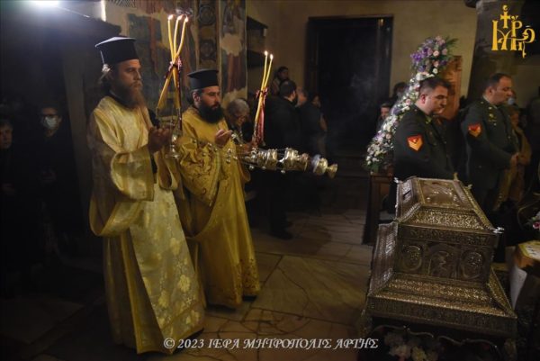 Με την πρέπουσα εκκλησιαστική τάξη και μεγαλοπρέπεια τελέσθηκε την Παρασκευή 10 Μαρτίου 2023, ο Πολυαρχιερατικός Εσπερινός για την μνήμη της Αγίας Θεοδώρας, Βασιλίσσης και Πολιούχου της Άρτας, στον φερώνυμο βυζαντινό Ιερό Ναό της Αγίας, όπου βρίσκεται ο τάφος της και τα Ιερά Λείψανά της.