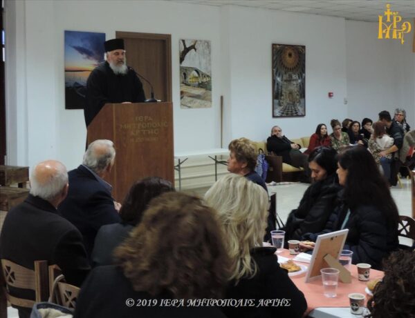 Μετά το πέρας της Θείας Λειτουργίας, στο Πνευματικό Κέντρο της Ενορίας του Αγίου Μαξίμου του Γραικού, ο Ηγούμενος της Ιεράς Μονής Τιμίου Προδρόμου Λαφυστίου Λεβαδείας π. Πορφύριος, ομίλησε στους παρισταμένους για το ιστορικό και την προσφορά της Ιεράς Μονής, στην οποία διατελεί Ηγούμενος.