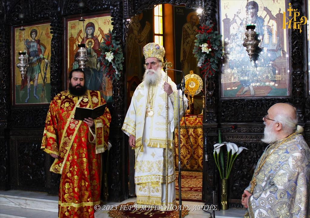Μετά το πέρας της Θείας Λειτουργίας, ο Σεβασμιώτατος ετέλεσε την καθιερωμένη Δοξολογία, με την παρουσία των Τοπικών Αρχών.
