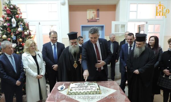 Τέλος, οι επίσημοι πήγαν στο Γηροκομείο «Γεωργίου και Σοφίας Μάτσου», όπου ο Σεβασμιώτατος ευλόγησε την Βασιλόπιτα και ευχήθηκαν στους Τροφίμους του Ιδρύματος για το νέο έτος.