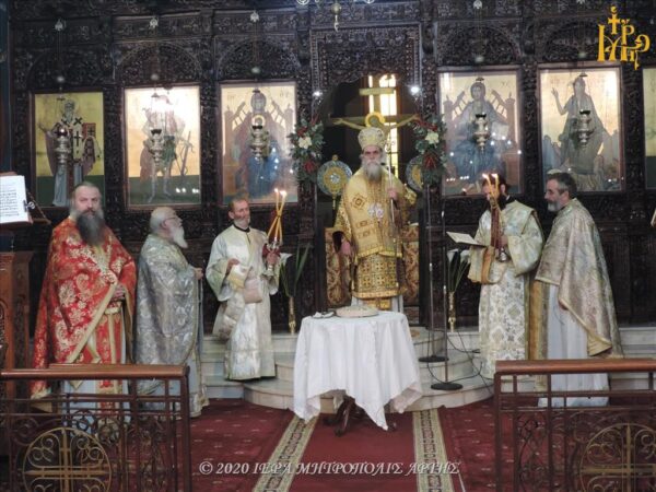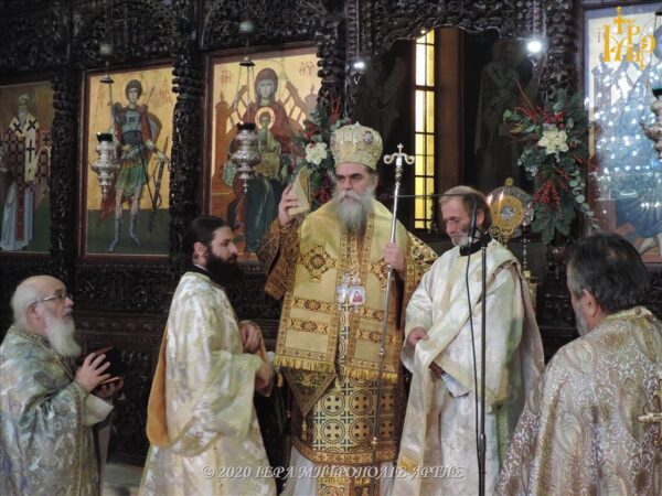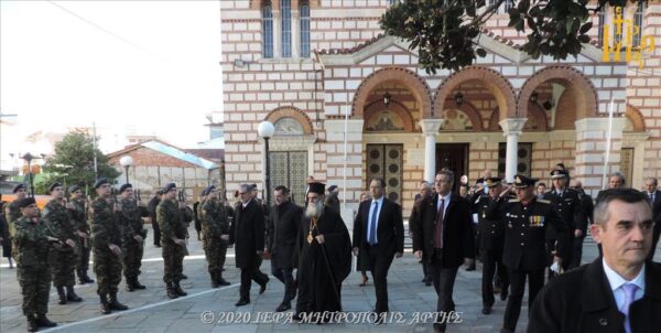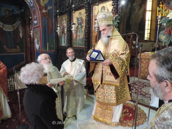 Επίσης, ευλόγησε την Βασιλόπιτα και επέδωσε στην κυρία Λεμονιά Καρατσιώλη το επίσημο έγγραφο ανακήρυξης, του αειμνήστου συζύγου της, Ιατρού Βασιλείου Καρατσιώλη, σε Μέγα Ευεργέτη της Ενορίας του Μητροπολιτικού Ναού Αγίου Δημητρίου Άρτης. Μετά το πέρας της Θείας Λειτουργίας προεξήρχε της καθιερωμένης Δοξολογίας, παρουσία των Τοπικών Αρχών.