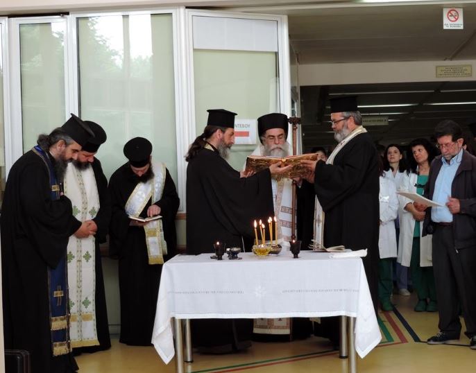 Το πρωΐ της Μεγάλης Τετάρτης, ο Σεβασμιώτατος Μητροπολίτης Άρτης κ. Καλλίνικος τέλεσε το Ιερό Ευχέλαιο στο Γενικό Νοσοκομείο Άρτας. Ο Σεβασμιώτατος επισκέφθηκε τους νοσηλευομένους και αντάλλαξαν πασχάλιες ευχές. Επίσης, είχε συνάντηση με τον Διοικητή του Νοσοκομείου κ. Βασίλειο Μπαλάσκα και με το προσωπικό, στους οποίους ευχήθηκε για τις εορτές του Πάσχα.