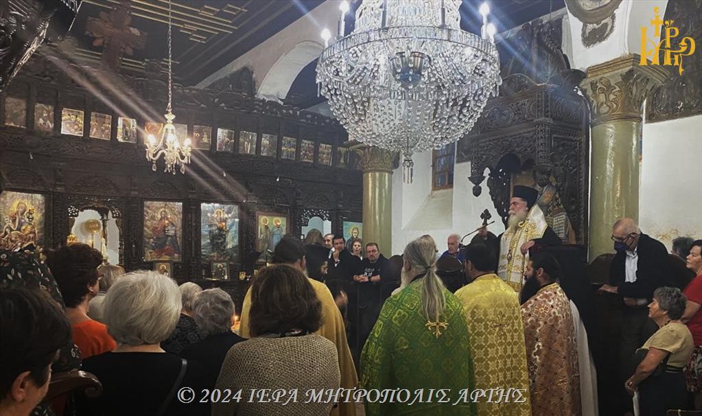 Στον πανηγυρίζοντα Ιερό Ναό της Αγίας Σοφίας στην πόλη της Άρτας τελέσθηκε το απόγευμα της Δευτέρας 16 Σεπτεμβρίου 2024 Μέγας Εσπερινός, χοροστατούντος του Σεβασμιωτάτου Μητροπολίτου Άρτης κ. Καλλινίκου.