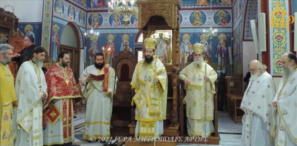 Στην Θεία Λειτουργία προεξήρχε ο Σεβασμιώτατος Μητροπολίτης Σισανίου και Σιατίστης κ. Αθανάσιος συλλειτουργούντος του Σεβασμιωτάτου Μητροπολίτη Άρτης κ. Καλλινίκου.