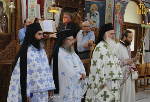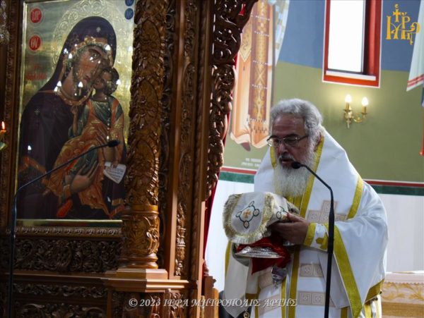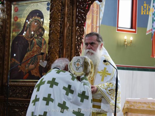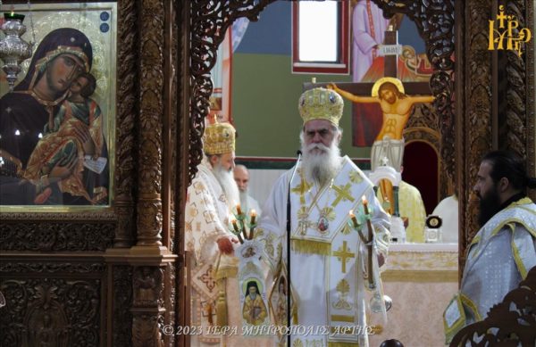 Πιστοί προσήλθαν στον Ιερό Ναό, προκειμένου, να συμμετάσχουν στην Θεία Λειτουργία, να προσκυνήσουν απότμημα Ιερού Λειψάνου του Αγίου Καλλινίκου, αλλά και για να υποβάλλουν ευχές στον Ποιμενάρχη τους.
