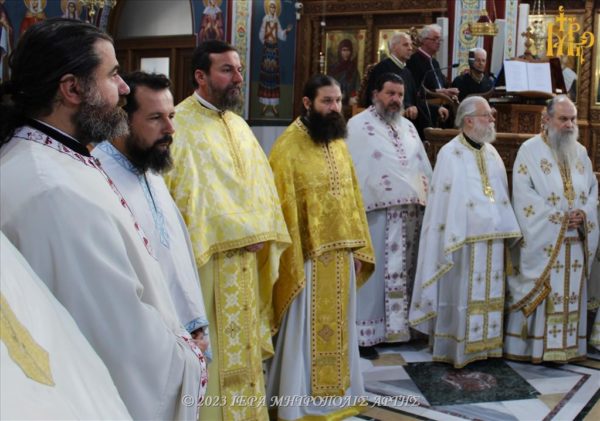 Κατά τον Όρθρο χοροστάτησε ο Σεβασμιώτατος Μητροπολίτης Σταγών και Μετεώρων κ. Θεόκλητος, ενώ της πανηγυρικής Θείας Λειτουργίας προέστη ο εορτάζων Μητροπολίτης Άρτης κ. Καλλίνικος, συλλειτουργούντων των Σεβασμιωτάτων Μητροπολιτών Νικοπόλεως και Πρεβέζης κ. Χρυσοστόμου και Σταγών και Μετεώρων κ. Θεοκλήτου.