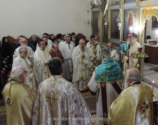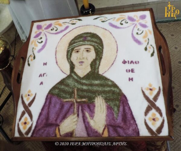 Την Τετάρτη 19 Φεβρουαρίου 2020, το πρωί, τελέσθηκε Αρχιερατική Θεία Λειτουργία επί τη μνήμη Αγίας Οσιομάρτυρος Φιλοθέης της Αθηναίας, στον Ιερό Ναό του Αγίου Ιωάννου του Θεολόγου, στην Άρτα, προεξάρχοντος του Σεβασμιωτάτου Άρτης κ. Καλλινίκου.