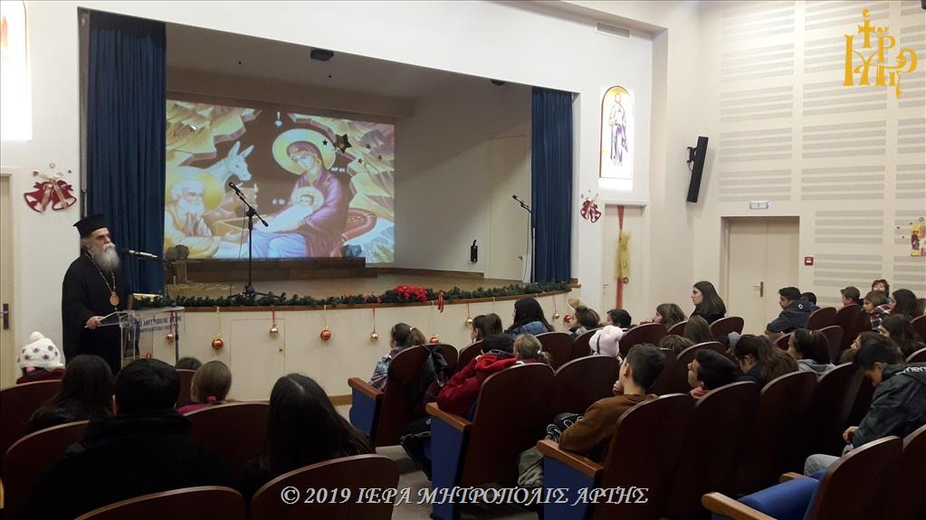 Την Δευτέρα 30 Δεκεμβρίου 2019, το πρωΐ, στο Πνευματικό Κέντρο «Άγιος Ιωάννης ο Θεολόγος», της Ιεράς Μητροπόλεως Άρτης, ο Σεβασμιώτατος Μητροπολίτης Άρτης κ. Καλλίνικος συναντήθηκε με παιδιά των Κατασκηνώσεων της Ιεράς Μητροπόλεως Λευκάδος και Ιθάκης, τα οποία συνοδευόμενα από τον π. Ιωαννίκιο Ζαμπέλη, πραγματοποίησαν προσκύνημα σε Ιερούς χώρους της Άρτας.