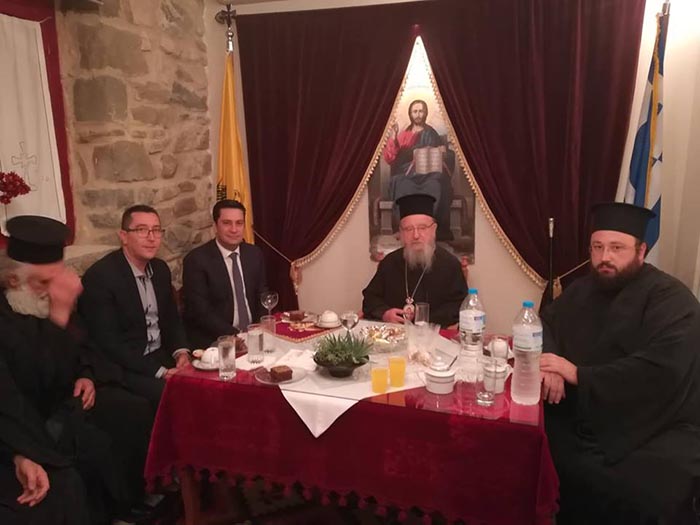 Εν συνεχεία στο κέντρο νεότητος φιλοξενήθηκαν όλοι οι καλεσμένου στους οποίους προσφέρθηκαν γλυκίσματα που ετοίμασαν οι κυρίες της Ενοριακής δράσης του Ιερού Ναού, όπου όλοι θαύμασαν και το Μουσείο Εκκλησιαστικών κειμηλίων που υπάρχει στο ναό, μοναδικό στην ευρύτερη περιοχή, αλλά και τη δανειστική βιβλιοθήκη.