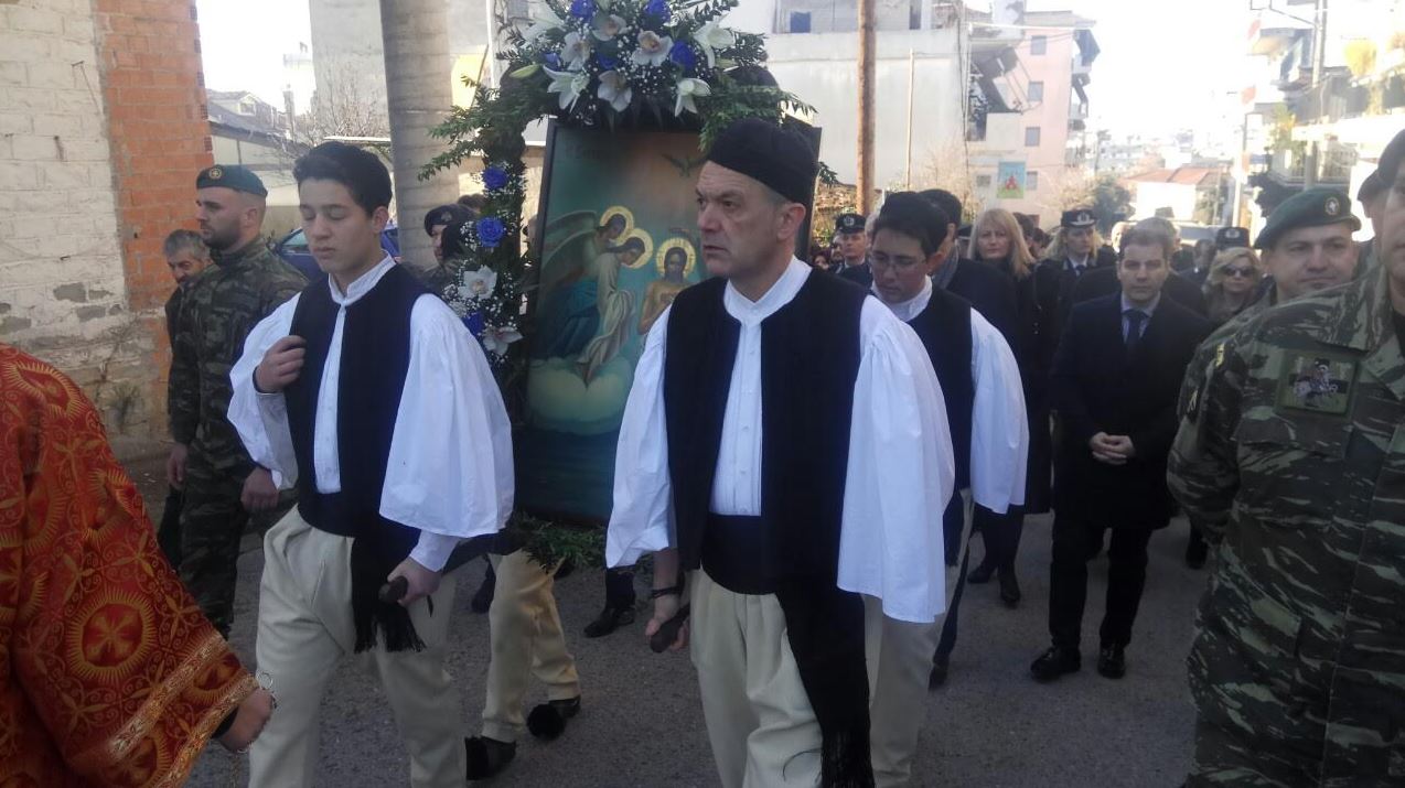 Στη συνέχεια, ο Σεβασμιώτατος Ποιμενάρχης μας κ. Κοσμάς, με αφορμή την χαρμόσυνη ημέρα των Θεοφανείων, ευχήθηκε με τις ακόλουθες δηλώσεις: «Διακηρύσουμε όλοι, σήμερα, ότι είμαστε πολιτισμένοι, ότι έχουμε πολιτισμένο κόσμο και ότι εμείς οι άνθρωποι ζούμε σ’ ένα πολιτισμό. Όμως, αν δούμε την πραγματικότητα, βλέπουμε ότι κάθε άλλο παρά πολιτισμένοι είμαστε, γιατί δεν ζούμε σ’ ένα ήρεμο περιβάλλον και με μια ήρεμη ζωή. Έχουμε άγχος, αγωνία, ζούμε με εχθρότητα μεταξύ μας, συνεχώς γεγονότα και εγκλήματα βλέπουμε και ζούμε, δυστυχώς. Αυτό το λέω, γιατί όταν μελετήσουμε όλη αυτή την κατάσταση, την σημερινή, θα δούμε ότι απουσιάζει από τη ζωή μας ο Επιφανής Θεός, ο Χριστός μας. Ενώ, όταν υπάρχει ο Χριστός, δεν ζούμε τέτοια γεγονότα. Πράγματι, μόνο τότε θα ζει με ηρεμία και με γαλήνη ο κόσμος μας! Αυτό θα ήθελα να ευχηθώ: “Σήμερα, εορτή των Θεοφανείων, όλοι μας να κατανοήσουμε ότι ηρεμία, γαλήνη, ευτυχία στον κόσμο και πρόοδο στην Πατρίδα μας δεν θα έχουμε ποτέ, αν δεν φέρουμε τον Επιφανέντα Χριστό στην καρδιά μας και την Χάρη του Θεού μέσα μας! Θα παρακαλέσω ακόμη, και προσεύχομαι πολύ γι’ αυτό, να φωτίσει ο Θεός τους άρχοντες (πάσης φύσεως άρχοντες – αφού ποτέ δεν κομματίζουμε), να καταλάβουν ότι μόνο ο Χριστός θα σώσει την Πατρίδα μας. Να ευχηθούμε, επίσης, και ό λαός μας να κατανοήσει ότι πρέπει να επιμείνει στους άρχοντες, να φέρουν το Χριστό στη ζωή, στην Ελλάδα. Έτσι θα έχουμε Θεοφάνεια, έτσι θα έχουμε πρόοδο, έτσι θα έχουμε ευτυχία αληθινή. Το εύχομαι με όλη μου την καρδιά: Να έχουμε πάντοτε Θεοφάνεια! Μην το ξεχνάμε ποτέ: Ο Θεός εφάνη και ήλθε για να μείνει στην καρδιά μας. Χρόνια πολλά, Ευλογημένα και Αγιασμένα”.