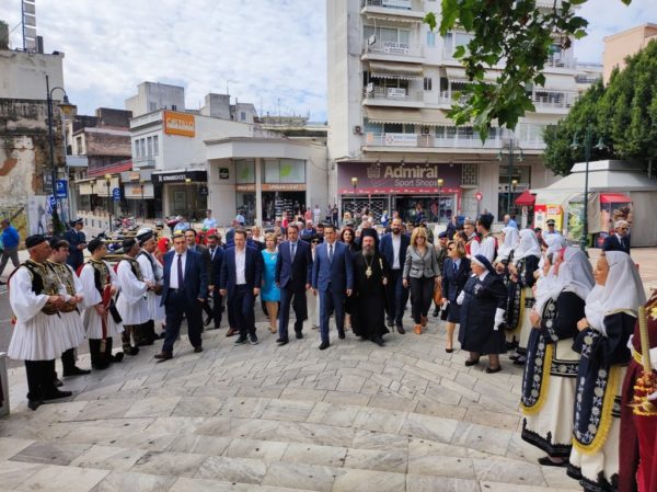 Κατόπιν ο Μητροπολίτης Αιτωλίας και Ακαρνανίας παρακολούθησε την παρέλαση των Σχολείων και των πολιτιστικών Συλλόγων από την εξέδρα των επισήμων.